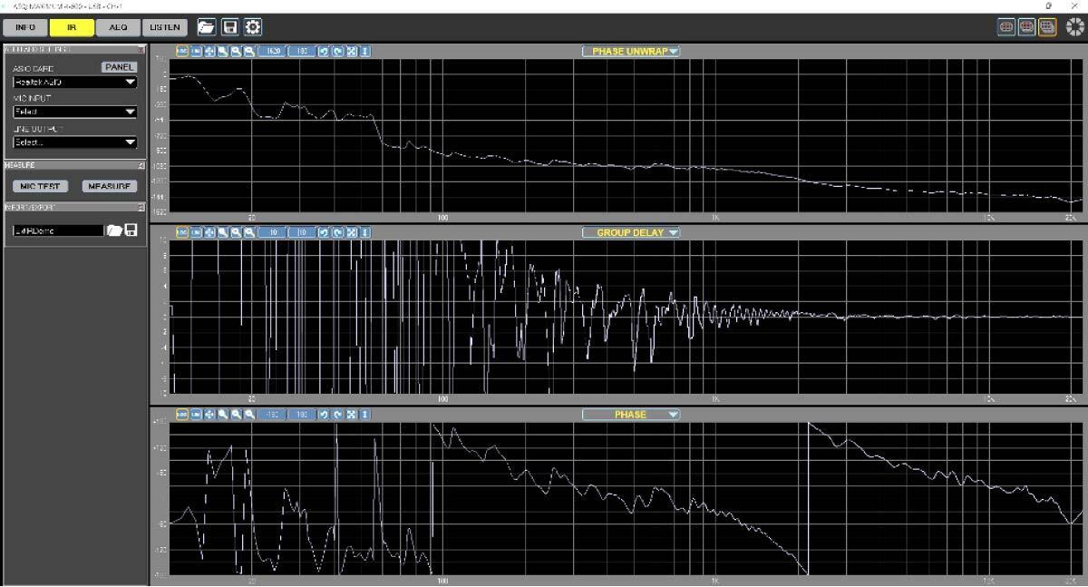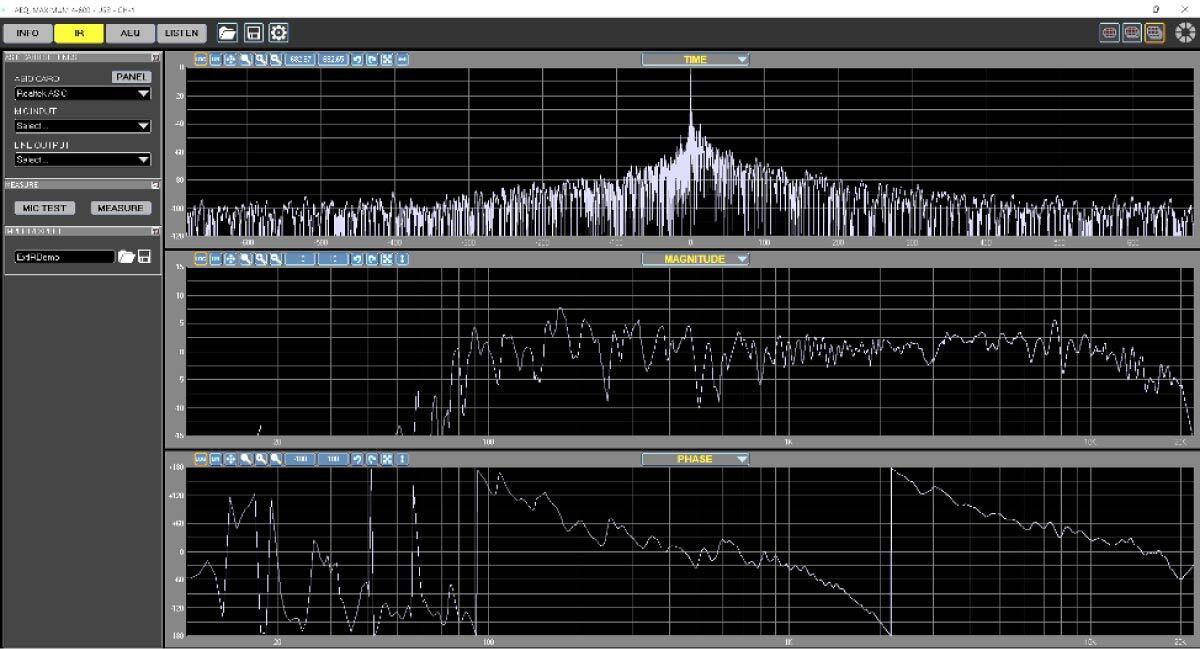После проверки установки оборудования и тестов звуковой карты и микрофона производится снятие показаний основных параметров акустической системы.