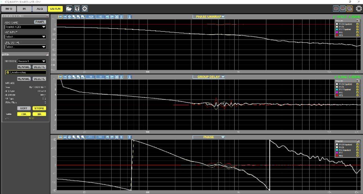 Работа с АЧХ и ФЧХ сигнала многократно описана в самых различных источниках, поэтому не будем на этом задерживаться. Но, нужно обратить внимание на то, что каждая из 12 полос параметрического эквалайзера имеет возможность выбора из 16 типов фильтров. Кстати, если вы уже имеете готовые настройки FIR-фильтров, произведённые на стороннем оборудовании, можете импортировать готовые значения (буквально одной кнопкой).