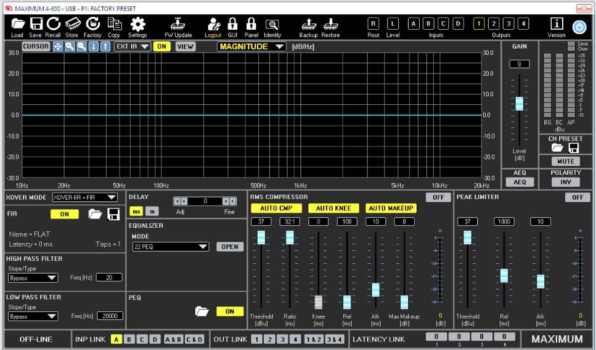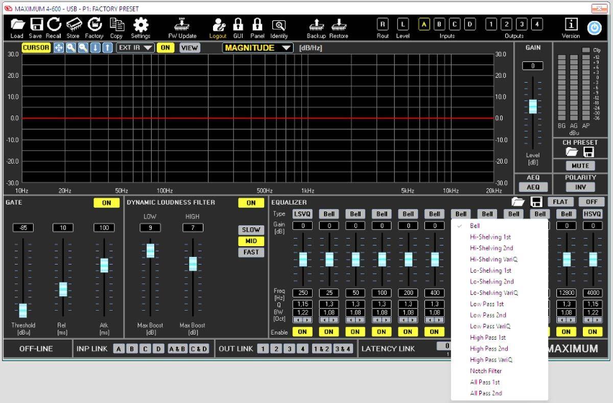 Сразу же стоит обратить ваше внимание на кроссовер. Наряду с классическими IIR-фильтрами возможно использовать FIR и, конечно же, MIR-фильтры.